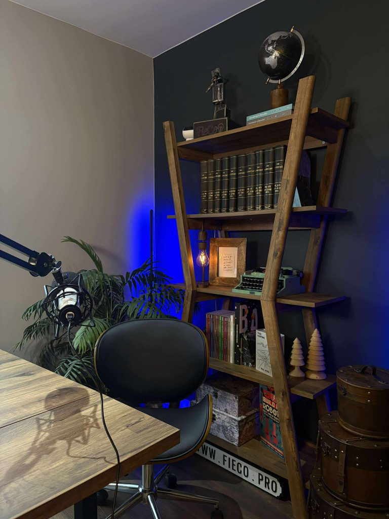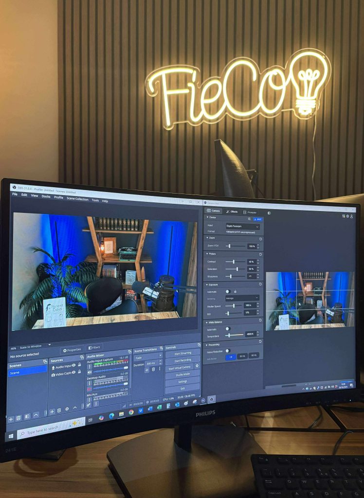 It’s like stepping into a stylish workspace designed for both comfort and creativity. Warm lighting, rich wooden textures, lush greenery, and that signature FieCo glow, everything has been carefully thought out to make you feel relaxed and inspired. Every detail, from lighting angles to your comfort with the camera, is handled with care.